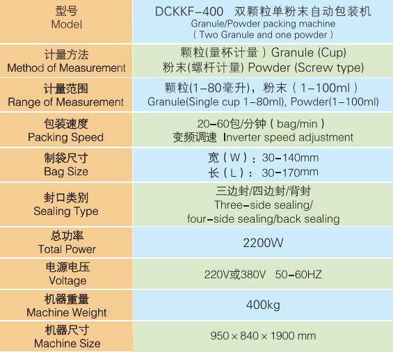 DCKKF-400雙顆粒單粉末自動(dòng)包裝機(jī)